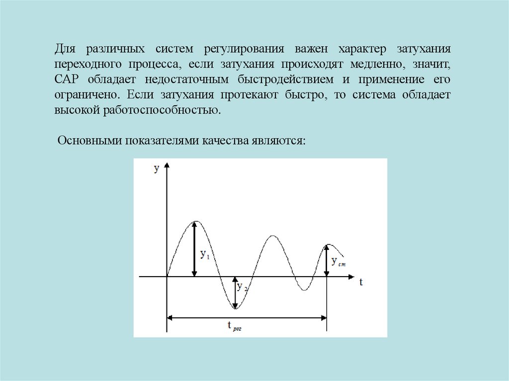 Для различных систем регулирования важен характер затуханияпереходного процесса, если затухания происходят медленно, значит,