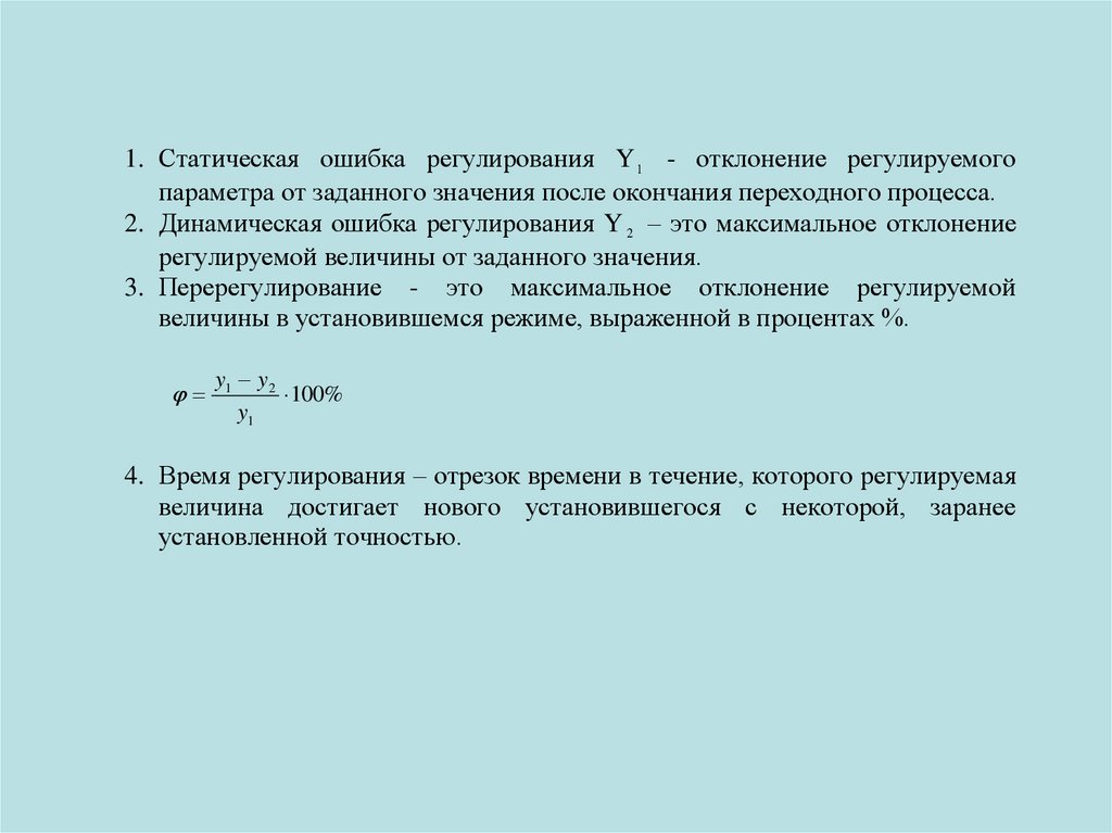 1. Статическая ошибка регулирования Y 1 - отклонение регулируемогопараметра от заданного значения после окончания переходного процесса.