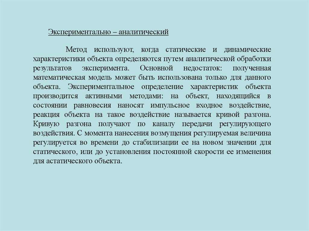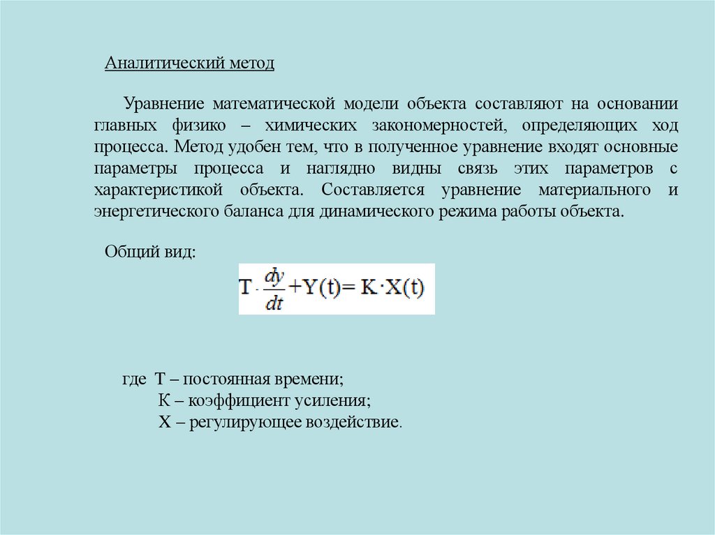 Аналитический методУравнение математической модели объекта составляют на основании