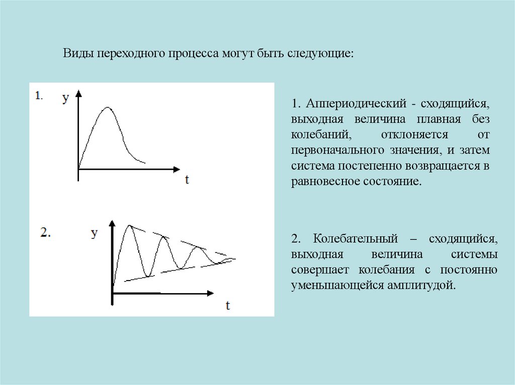 Виды переходного процесса могут быть следующие:1. Аппериодический - сходящийся,