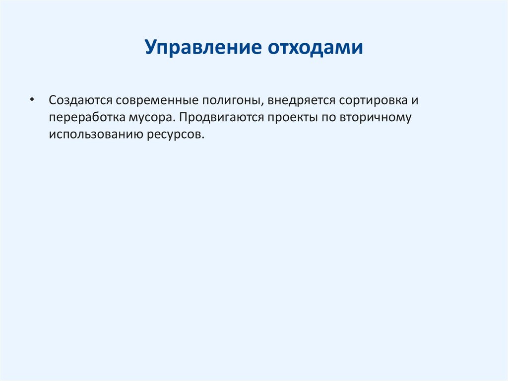 Управление отходами• Создаются современные полигоны, внедряется сортировка и
