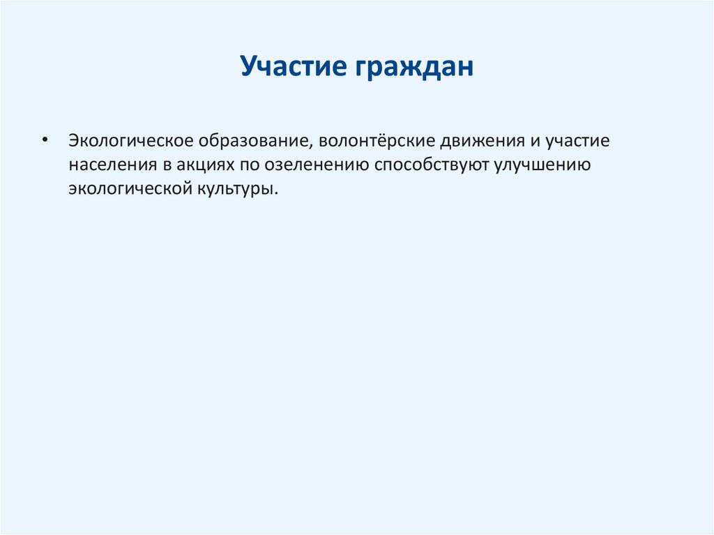 Участие граждан• Экологическое образование, волонтёрские движения и участие