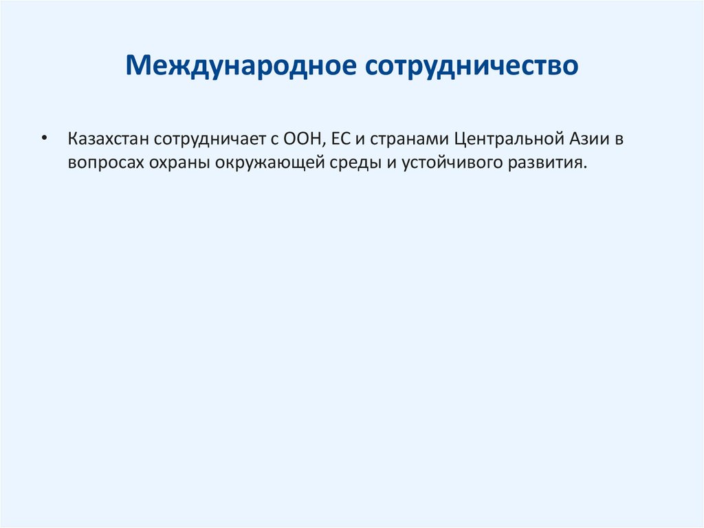 Международное сотрудничество• Казахстан сотрудничает с ООН, ЕС и странами Центральной Азии в