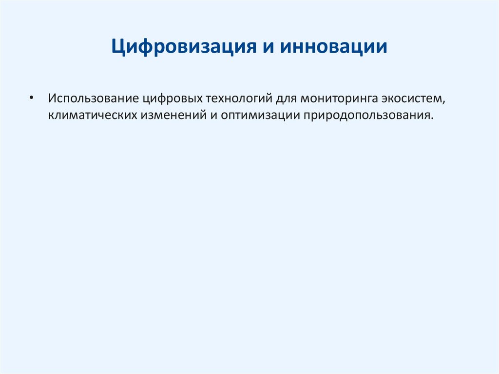 Цифровизация и инновации• Использование цифровых технологий для мониторинга экосистем,