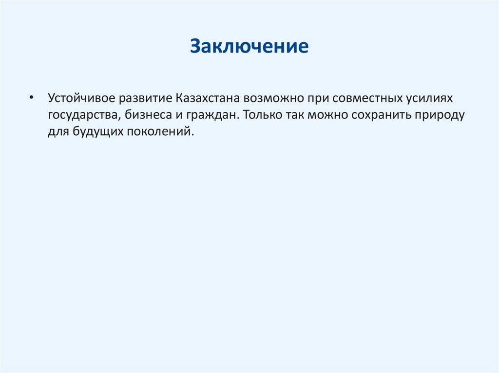 Заключение• Устойчивое развитие Казахстана возможно при совместных усилиях
