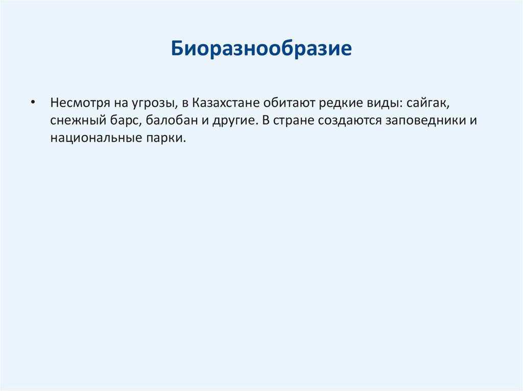 Биоразнообразие• Несмотря на угрозы, в Казахстане обитают редкие виды: сайгак,