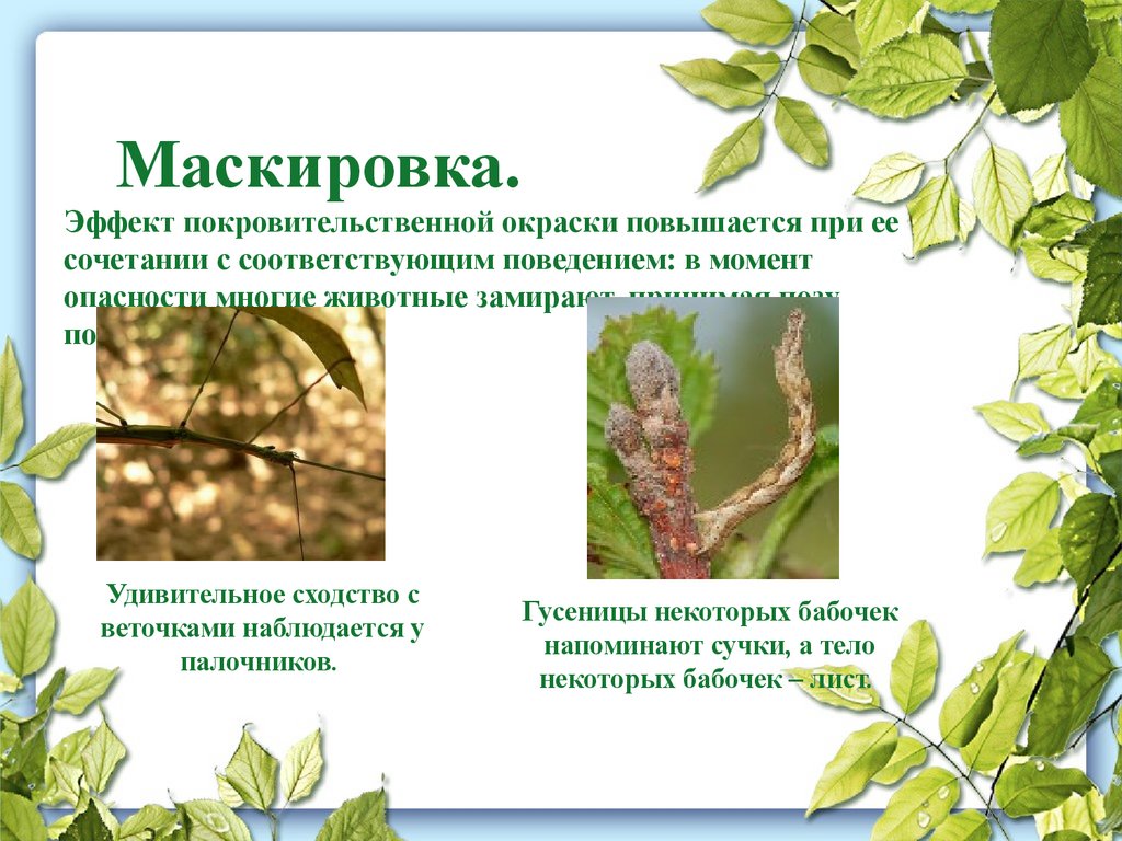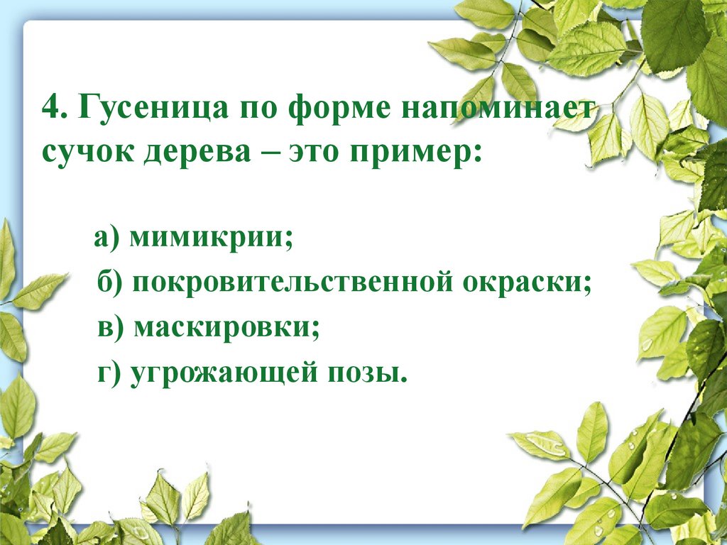 4. Гусеница по форме напоминаетсучок дерева – это пример:
