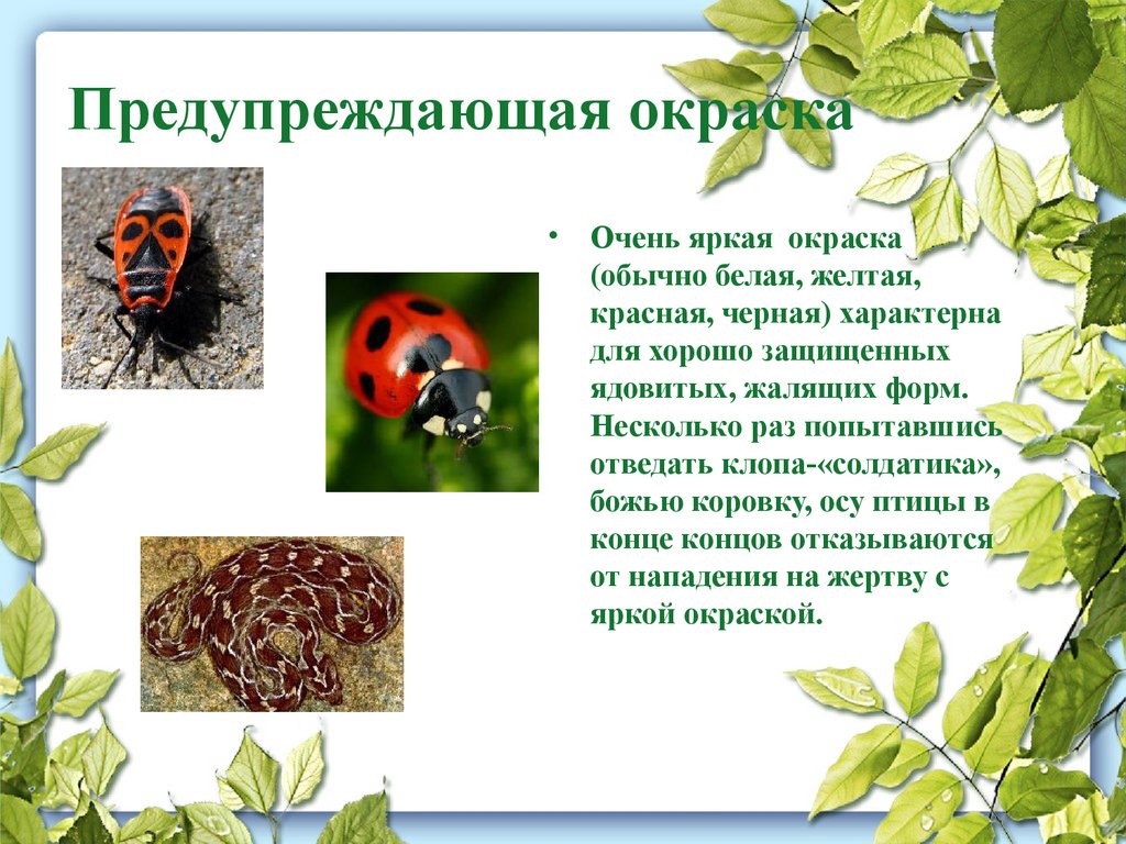 Маскировка.Эффект покровительственной окраски повышается при ее