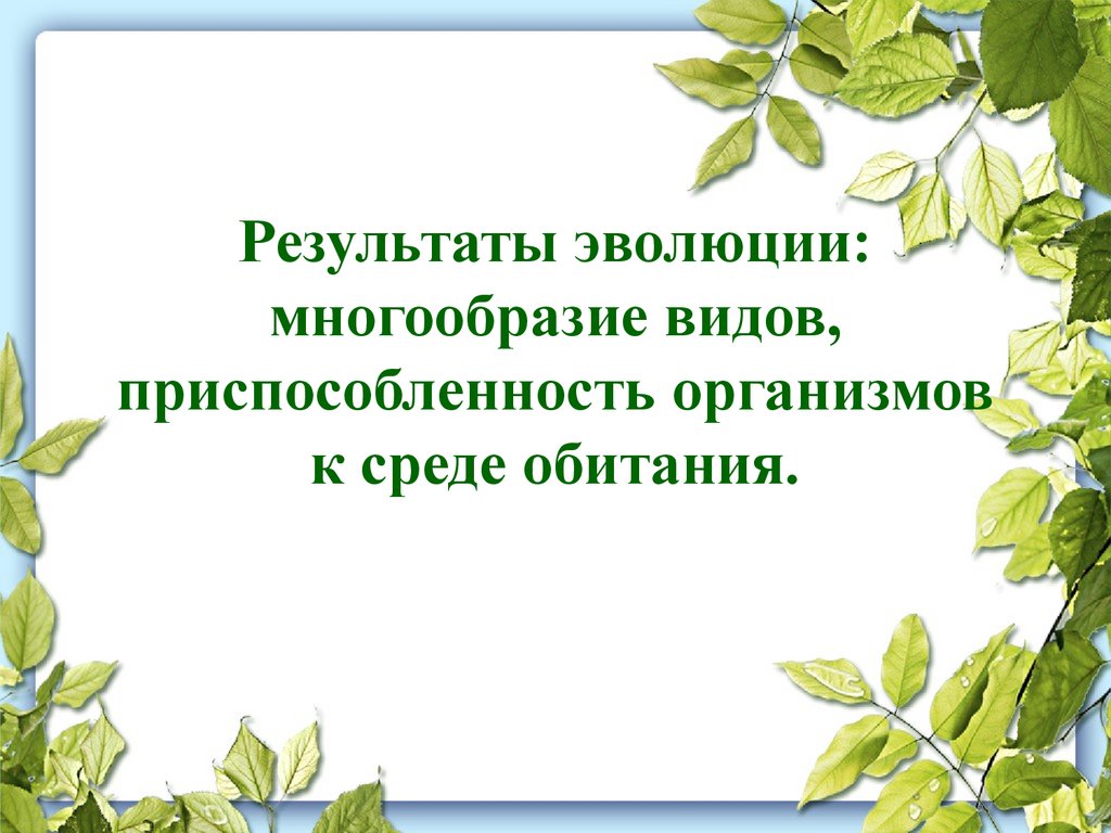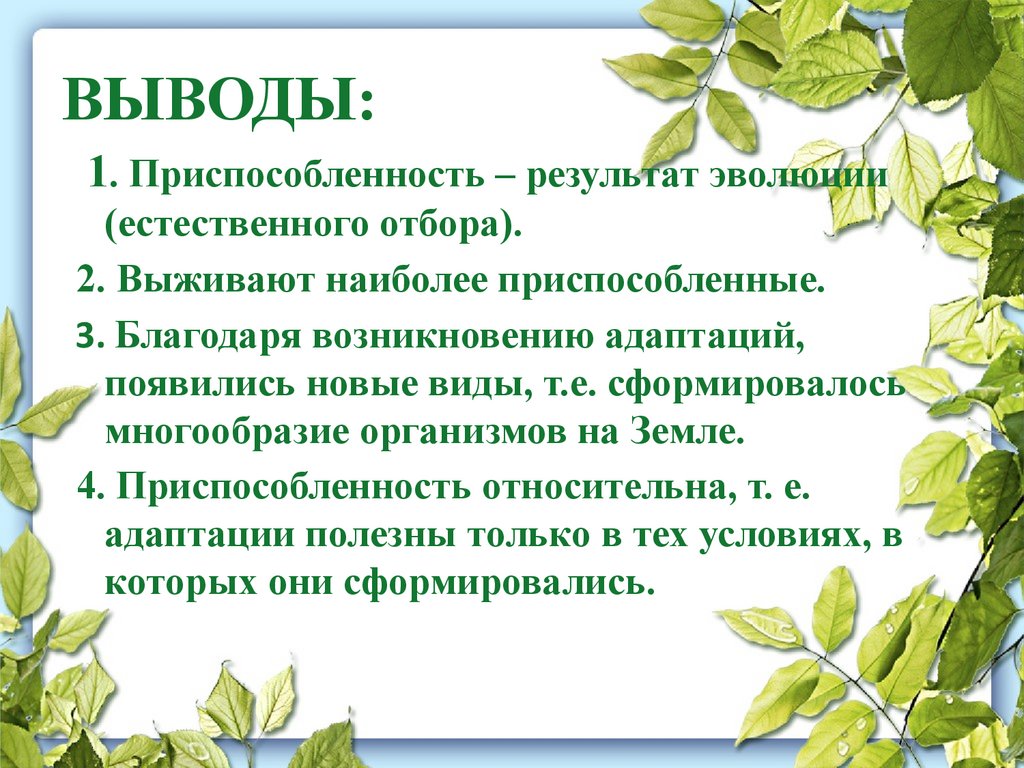 ВЫВОДЫ:1. Приспособленность – результат эволюции