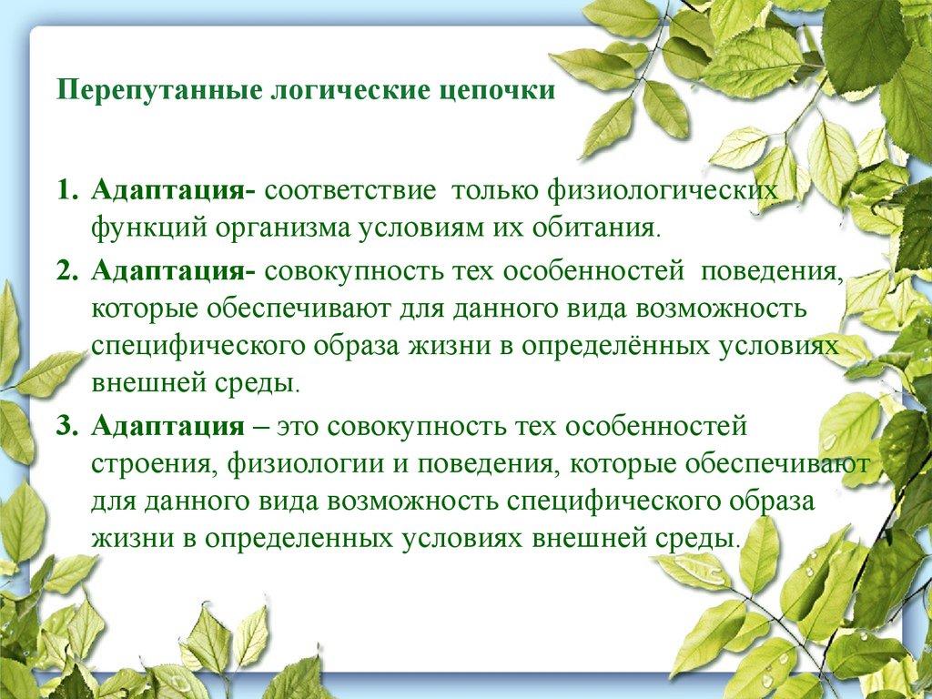 Перепутанные логические цепочки1. Адаптация- соответствие только физиологических