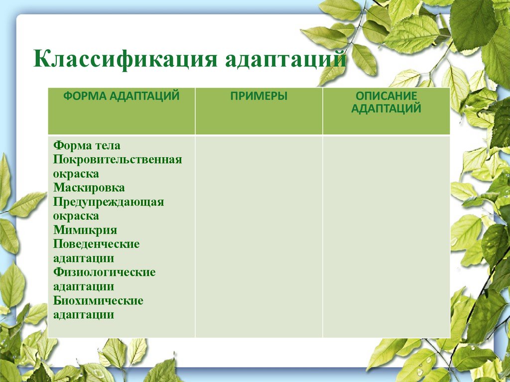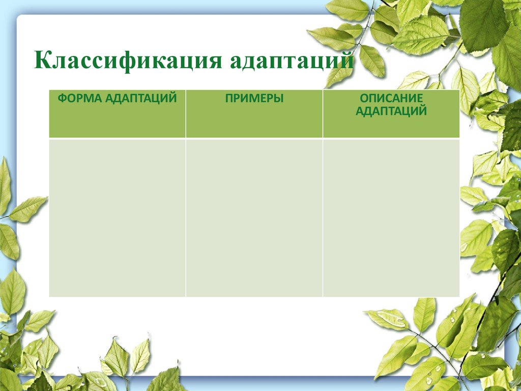 Классификация адаптацийФОРМА АДАПТАЦИЙ