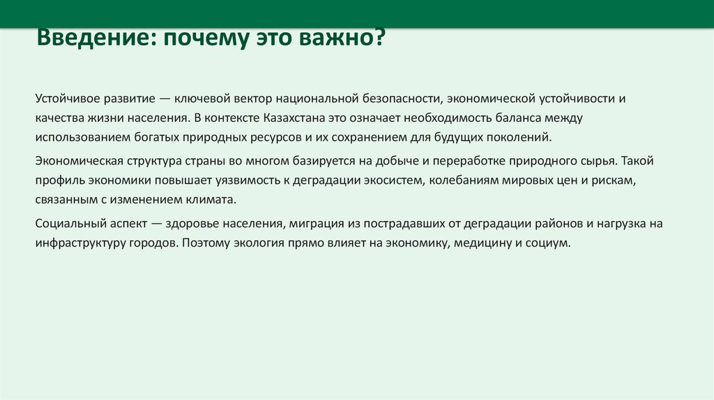 Введение: почему это важно?Устойчивое развитие — ключевой вектор национальной безопасности, экономической устойчивости и