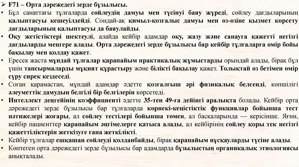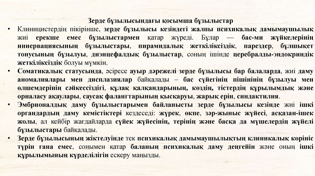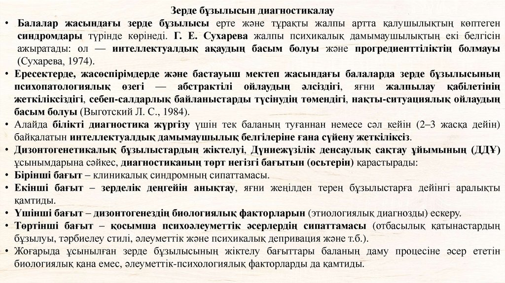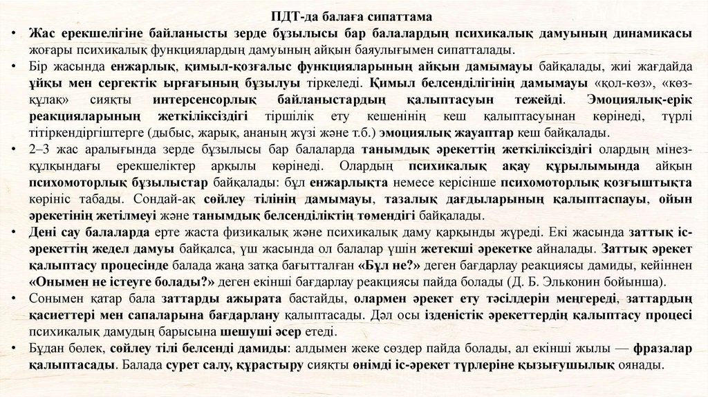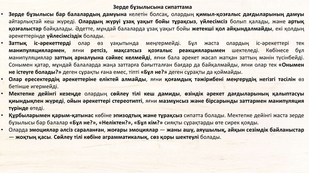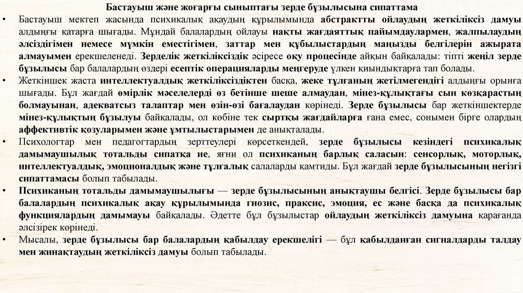 Лекция 6. Психикалықдамудың бұзылыстары және