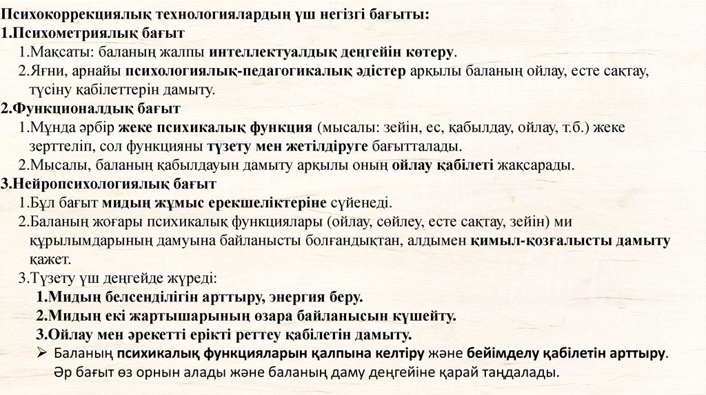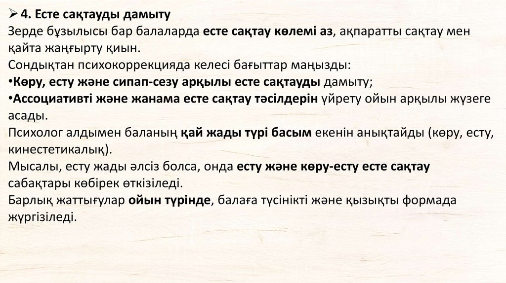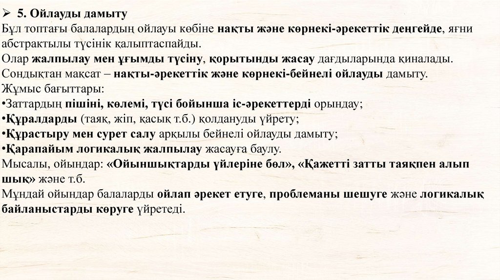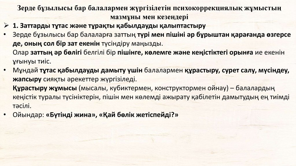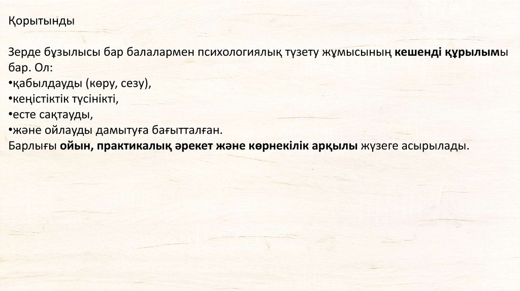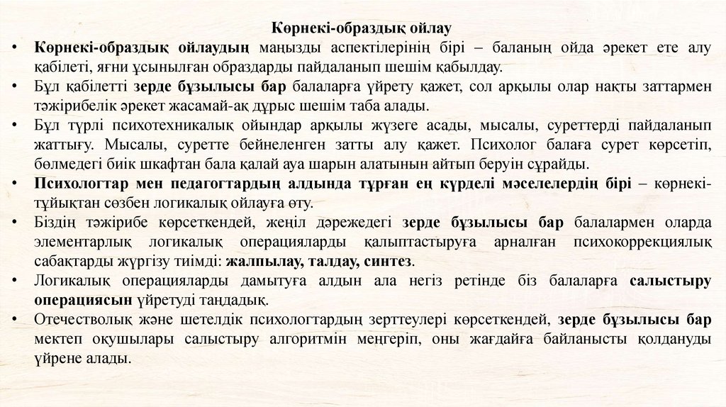9. Балалардың логикалық операцияларын (жалпылау, талдау, синтез) дамытуда психокоррекциялық
