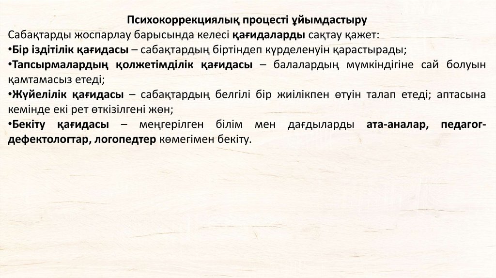 тәсіл. Психокоррекция процесі баланың қолжетімді іс-әрекет түрі аясында жүргізілуі тиіс. Егер