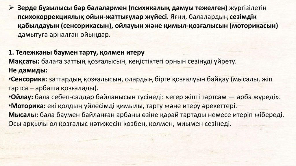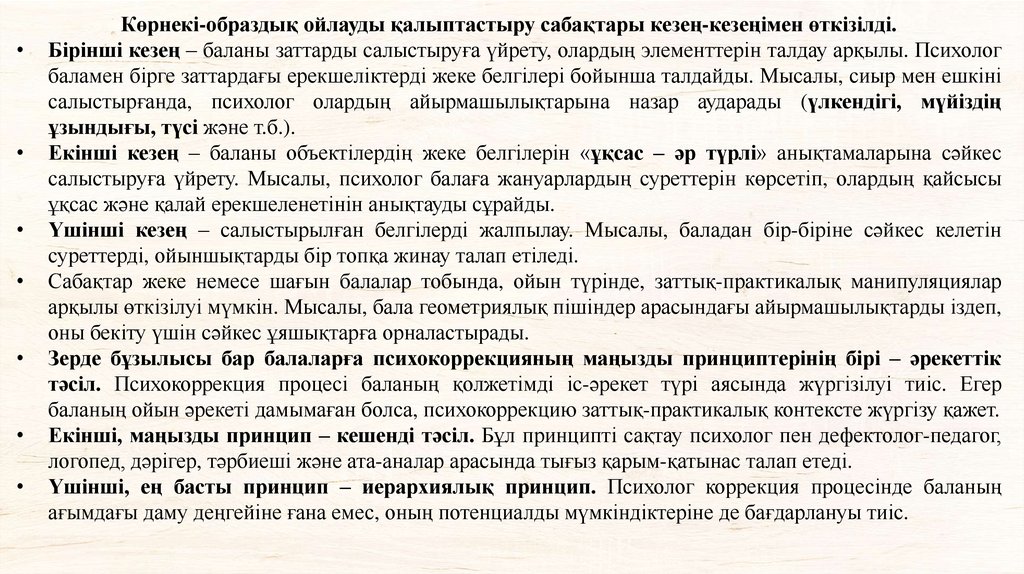 баланың ойын әрекеті дамымаған болса, психокоррекцию заттық-практикалық контексте жүргізу қажет.