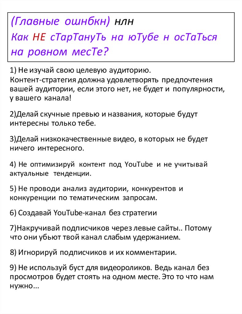 (Главные ошнбкн) нлнКак НЕ сТарТануТь на юТубе н осТаТься