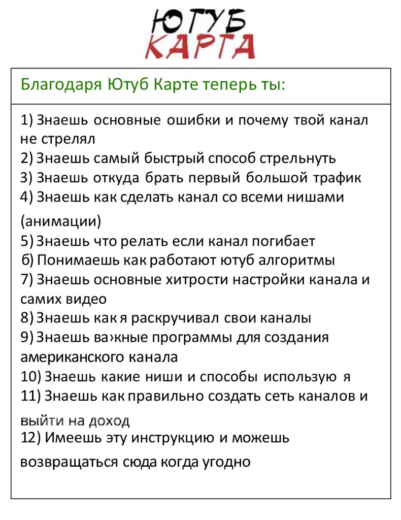 Благодаря Ютуб Карте теперь ты:1) Знаешь основные ошибки и почему твой канал