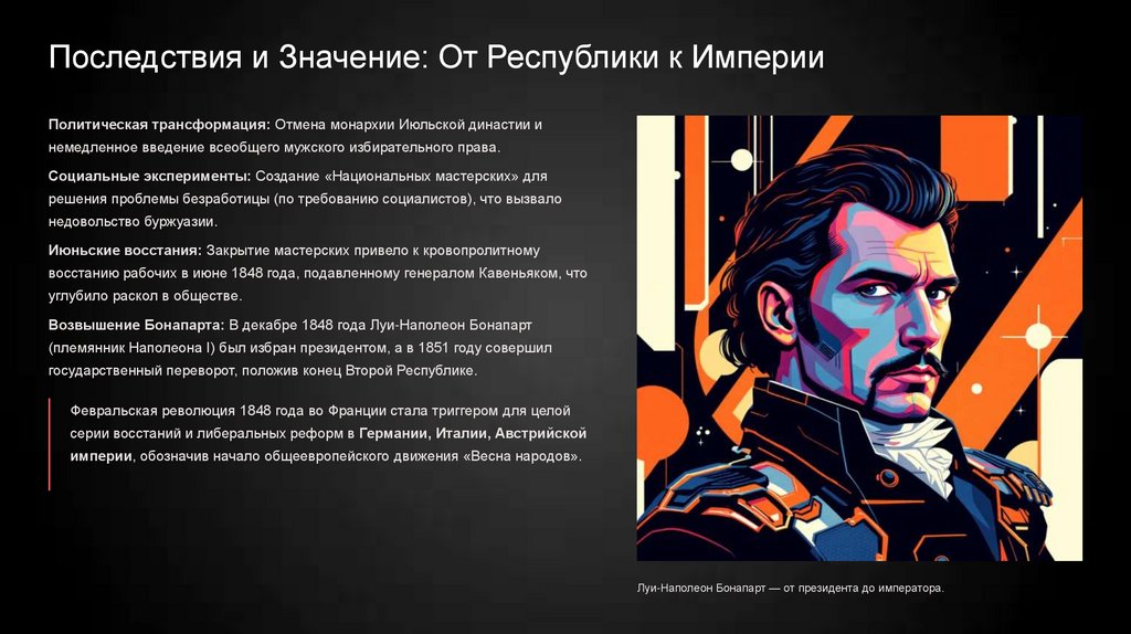Последствия и Значение: От Республики к ИмперииПолитическая трансформация: Отмена монархии Июльской династии и