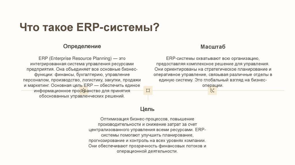централизованного управления всеми ресурсами. ERPсистемы помогают улучшить планирование,
