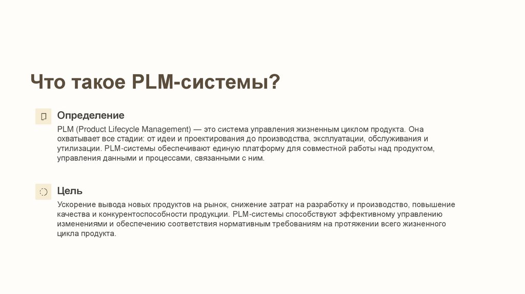 PLM (Product Lifecycle Management) — это система управления жизненным циклом продукта. Она