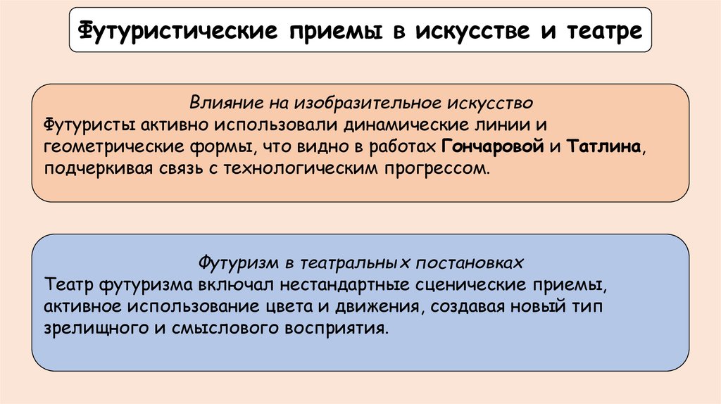 Футуристические приемы в искусстве и театреВлияние на изобразительное искусство