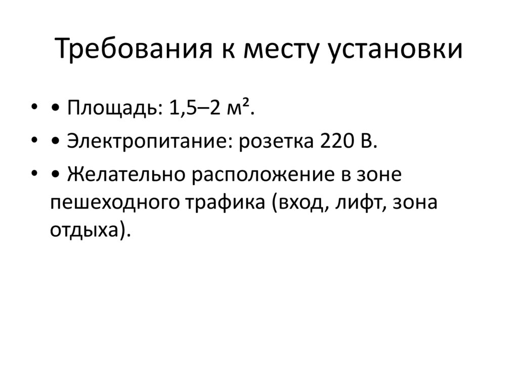 Требования к месту установки• • Площадь: 1,5–2 м².