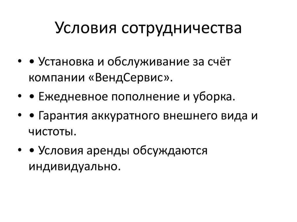 Условия сотрудничества• • Установка и обслуживание за счёт