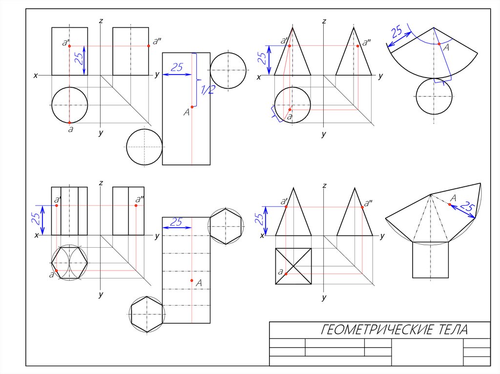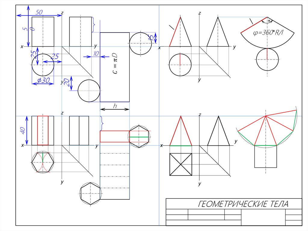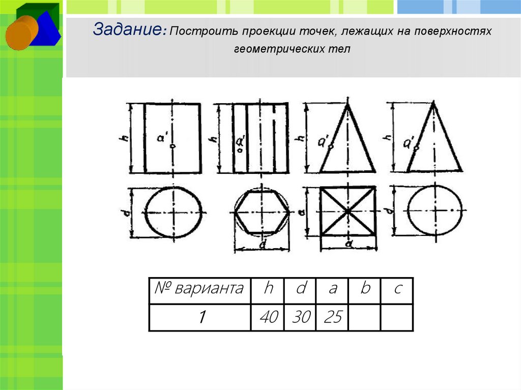 9. Чертеж цилиндра в системе прямоугольной проекции