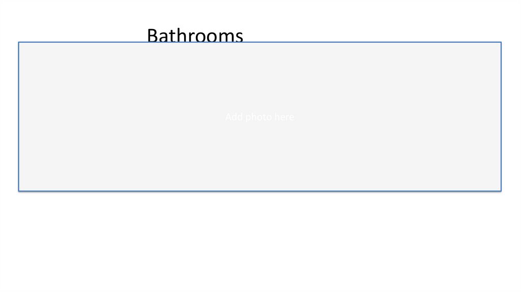 Bathrooms• Two bathrooms: one with a bath, one with a shower.
