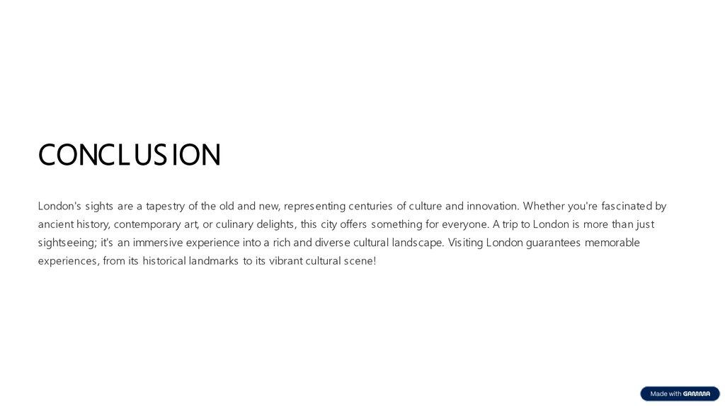 ancient history, contemporary art, or culinary delights, this city offers something for everyone. A trip to London is more than just