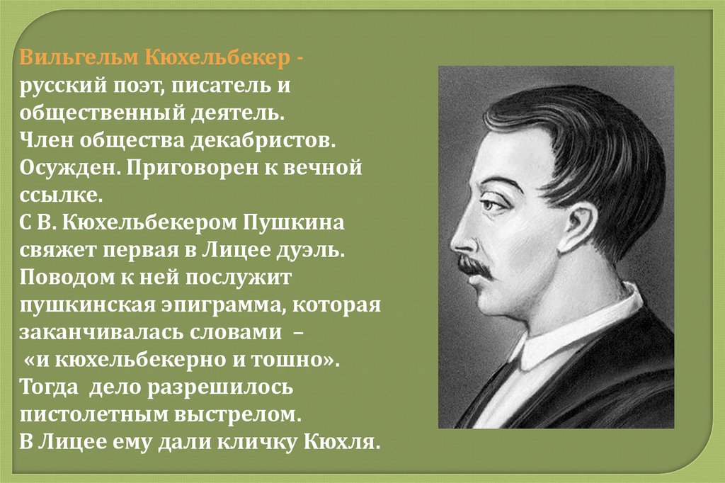 И.И.Пущина, В.К.Кюхельбекера и началом