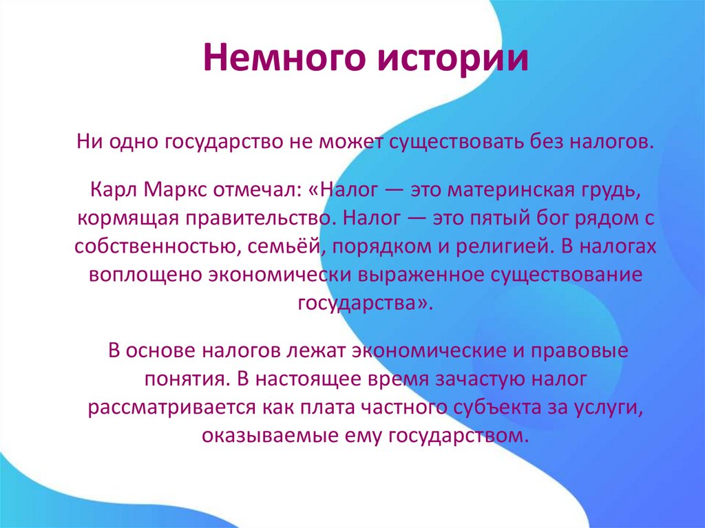 Карл Маркс отмечал: «Налог — это материнская грудь,