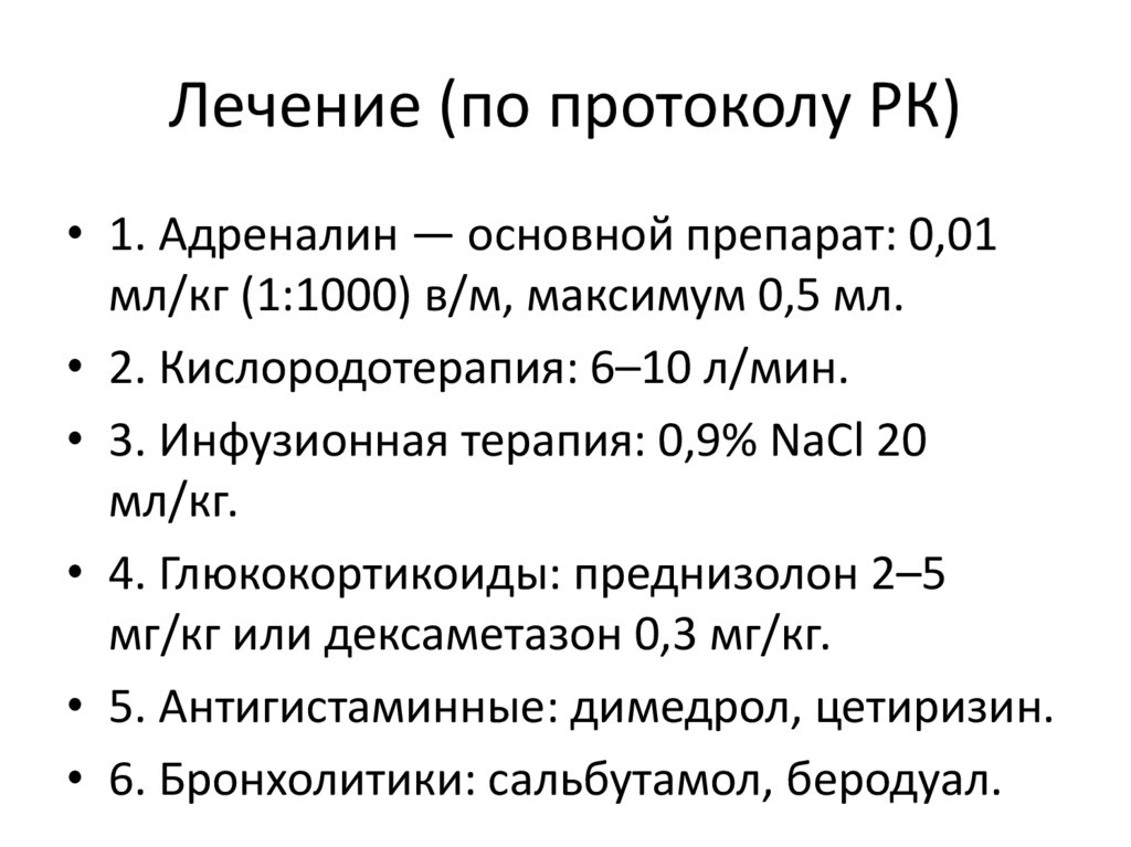 Лечение (по протоколу РК)• 1. Адреналин — основной препарат: 0,01