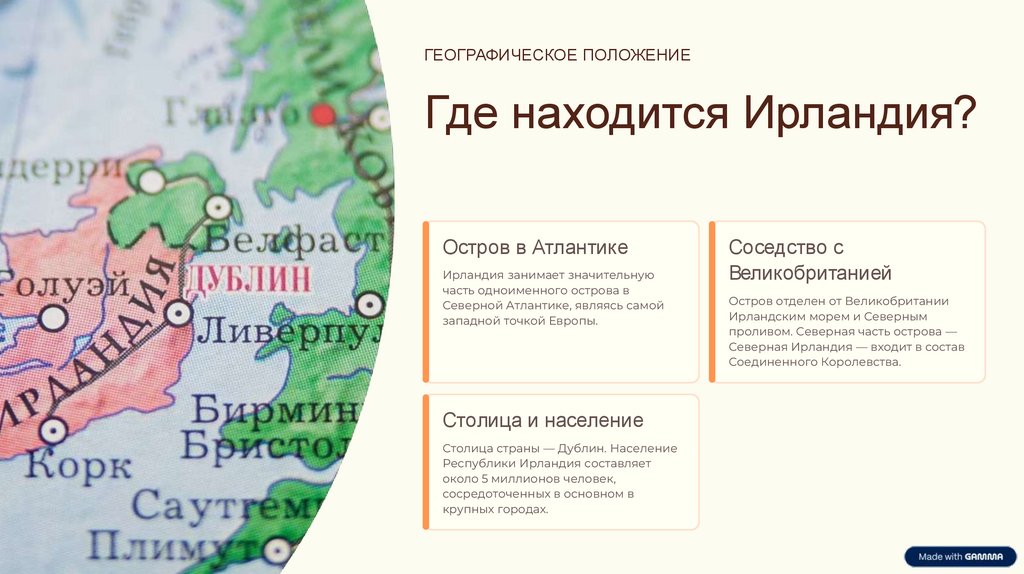 ГЕОГРАФИЧЕСКОЕ ПОЛОЖЕНИЕГде находится Ирландия?