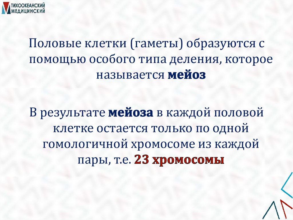 Половые клетки (гаметы) образуются спомощью особого типа деления, которое