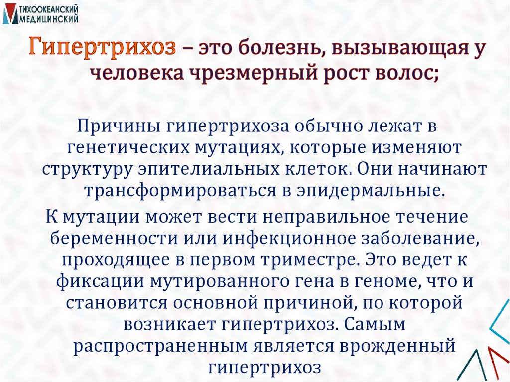 Причины гипертрихоза обычно лежат вгенетических мутациях, которые изменяют