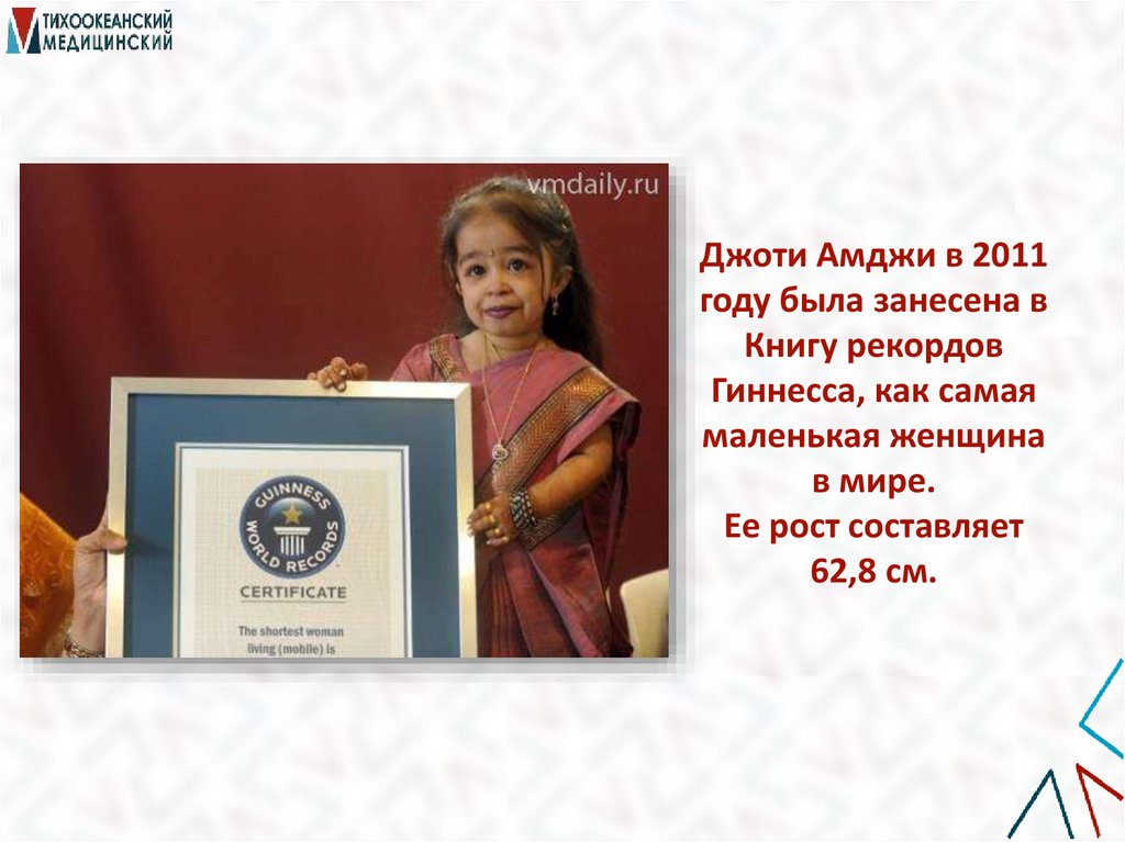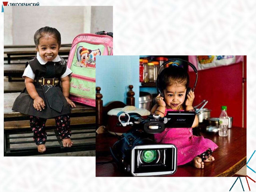 54. Джоти Амджи - жительница Индии в возрасте 15-лет рядом со своими сверстницами; Вес 5 кг, рост – 58 см.