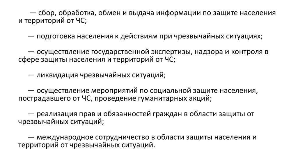 — сбор, обработка, обмен и выдача информации по защите населенияи территорий от ЧС;