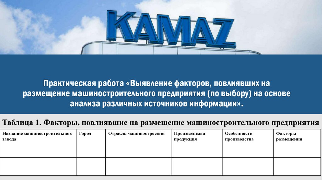 Практическая работа «Выявление факторов, повлиявших наразмещение машиностроительного предприятия (по выбору) на основе