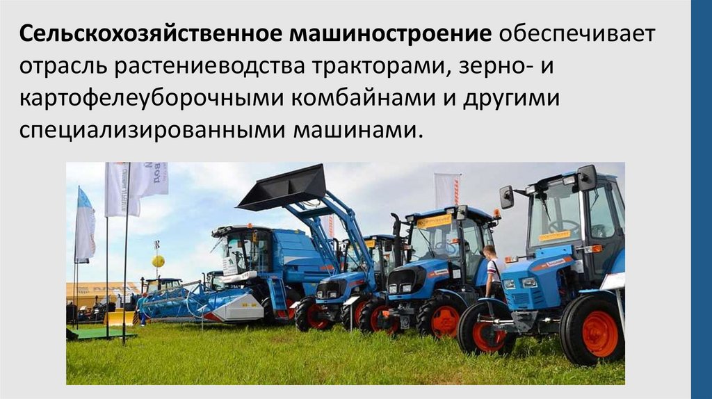 Сельскохозяйственное машиностроение обеспечиваетотрасль растениеводства тракторами, зерно- и