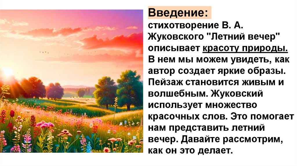 2. Автор описывает вечер, чтобы передать атмосферу спокойствия