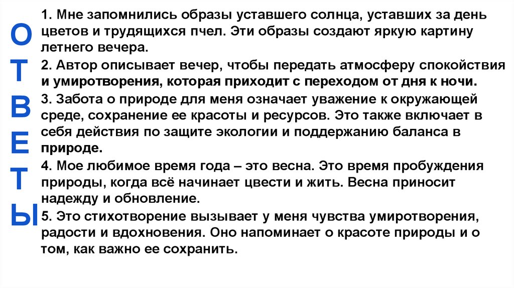 5. Это стихотворение вызывает у меня чувства умиротворения,
