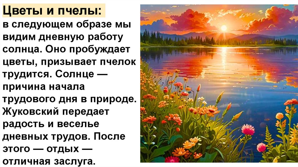 цветов и трудящихся пчел. Эти образы создают яркую картину