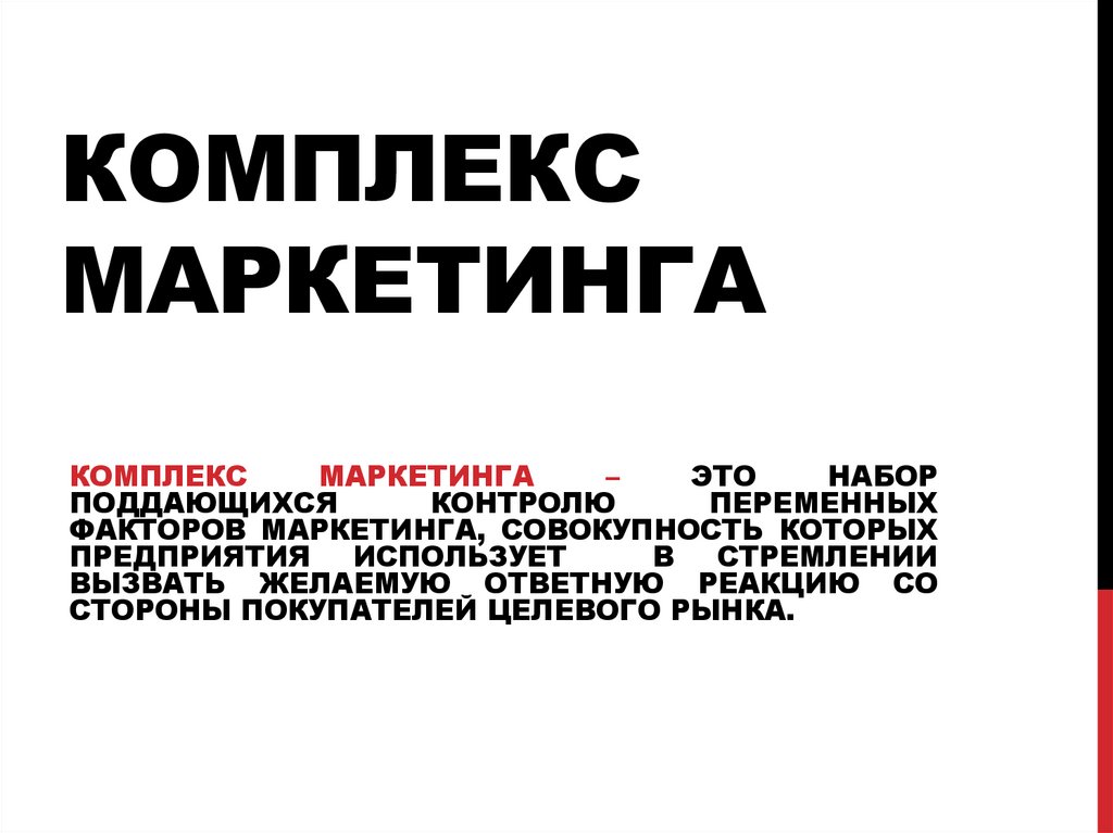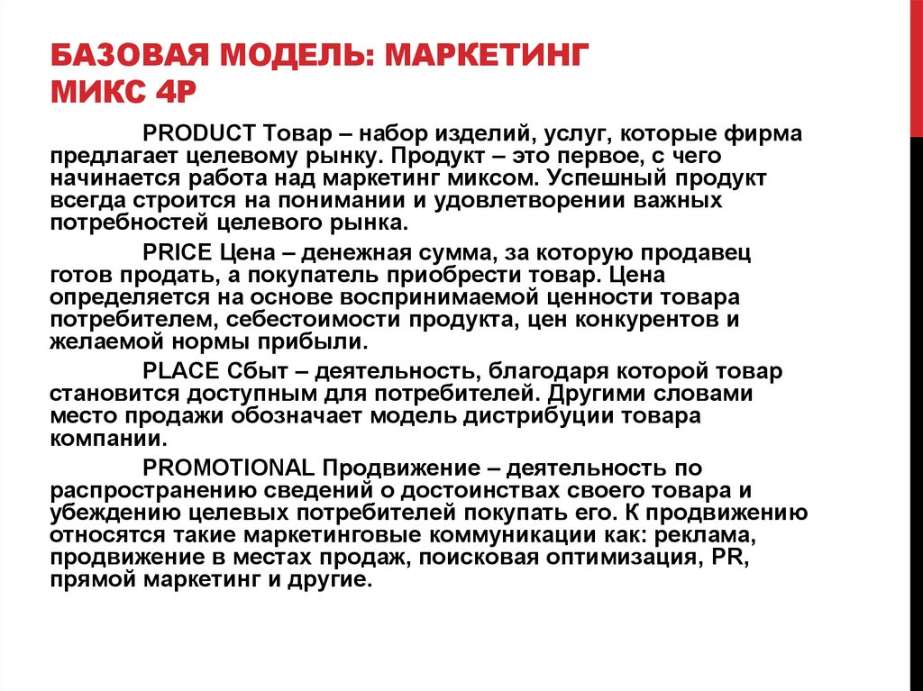 БАЗОВАЯ МОДЕЛЬ: МАРКЕТИНГМИКС 4Р