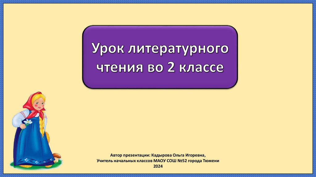 Автор презентации: Кадырова Ольга Игоревна,Учитель начальных классов МАОУ СОШ №52 города Тюмени