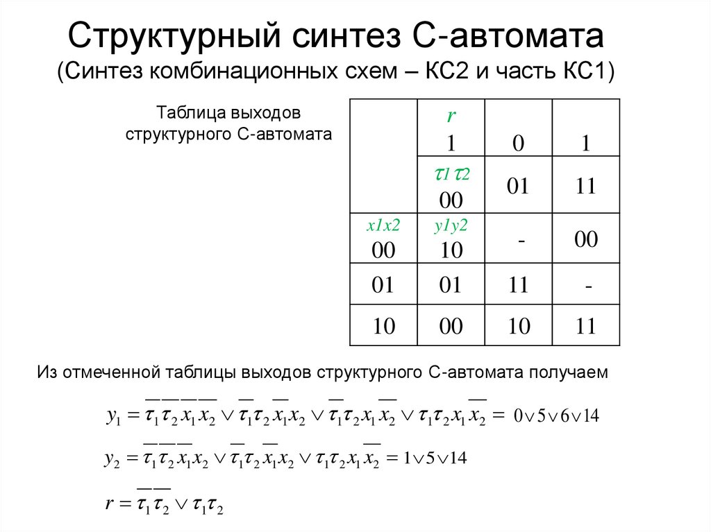 Из отмеченной таблицы выходов структурного С-автомата получаем