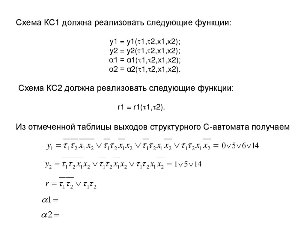 Схема КС1 должна реализовать следующие функции:y1 = y1( 1, 2,x1,x2);