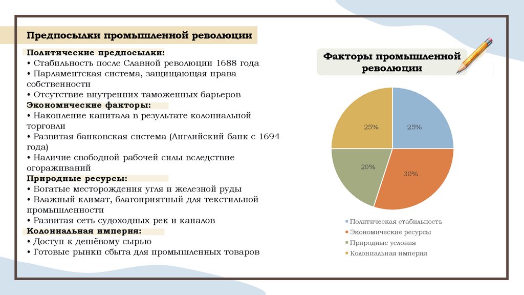 Предпосылки промышленной революцииПолитические предпосылки: