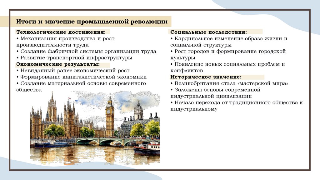 Итоги и значение промышленной революцииТехнологические достижения: